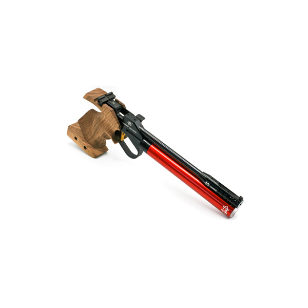 - anatomisch geformter Morini-Nussbaumgriff mit verstellbarer Handballenauflage in verschiedenen Größen für Rechts- und Linksschützen lieferbar