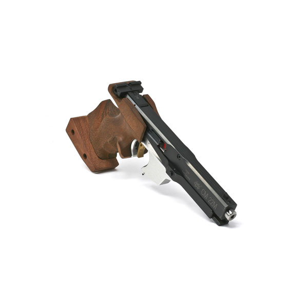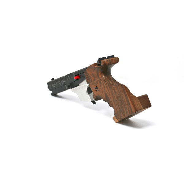 - anatomisch geformter Morini Nussbaumgriff mit verstellbarer Handballenauflage in verschiedenen Größen für Rechts- oder Linksschützen lieferbar